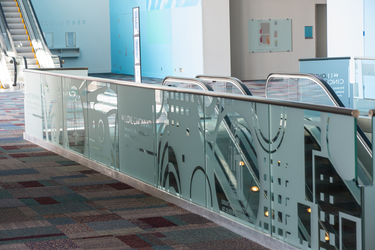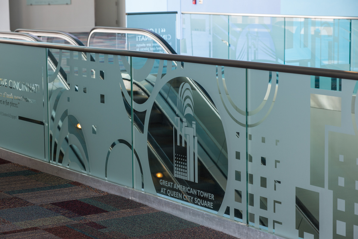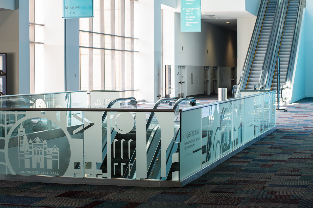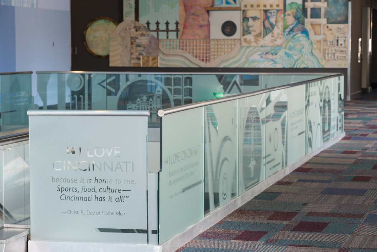 As Lead Project Manager, I guided a team of four youth apprentices in this collaboration between ArtWorks and the Cincinnati Duke Energy Convention Center. Together, we crafted icons of iconic Cincinnati landmarks, transforming them into vibrant graphic patterns etched in vinyl across 54 expansive glass panels—a permanent installation that infuses the space with local spirit. To deepen the impact, we ventured across the city, gathering heartfelt quotes from Cincinnati residents and voting on favorites to weave into the design, celebrating the city's layered history with a personal touch. My contributions were honored at a special reception and spotlighted on local news.